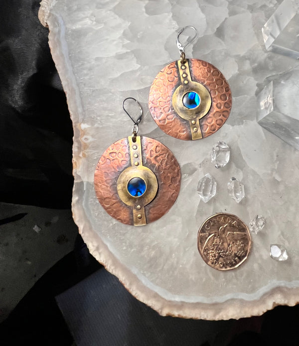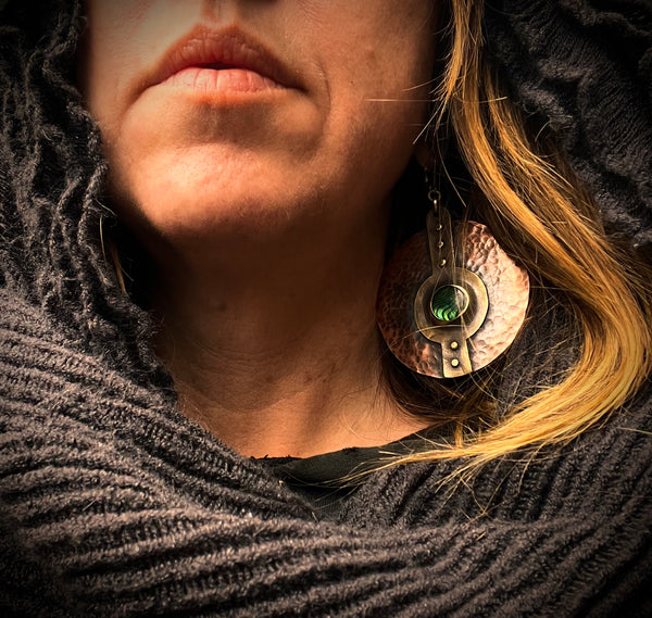 Mixed metal abalone shield earrings
