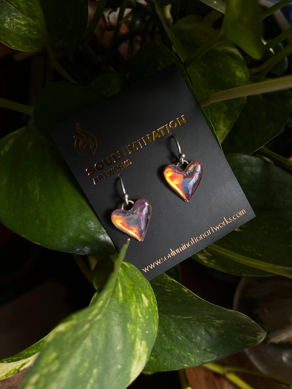 Iridescent amour resin heart earrings