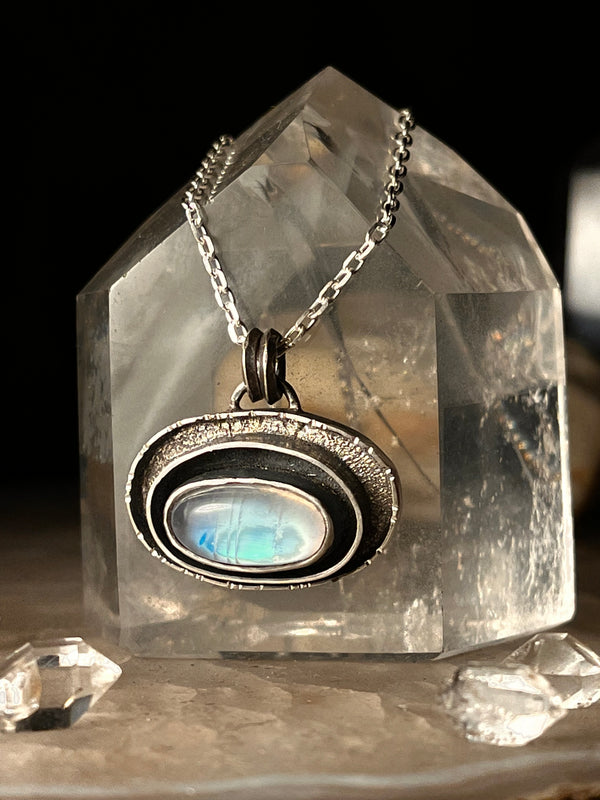 Rainbow moonstone vortex pendant