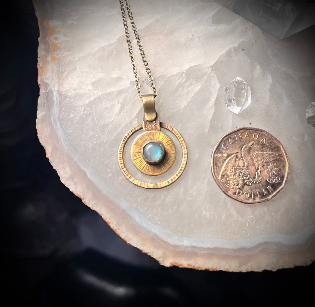 Brass labradorite orbital pendant